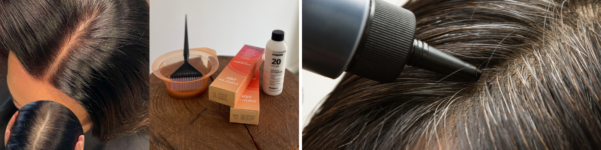 1 . Først skal du måle selve hårfarven af. Bruger du mere end én hårfarve i en blanding er det meget vigtigt at du rører hårfarverne sammen inden du kommer beize i farveskålen. Så når hårfarverne er mixet godt sammen, så tilføjer du så beizen til hårfarven. Rør igen grundigt sammen indtil du har en cremet og glat konsistens uden klumper.